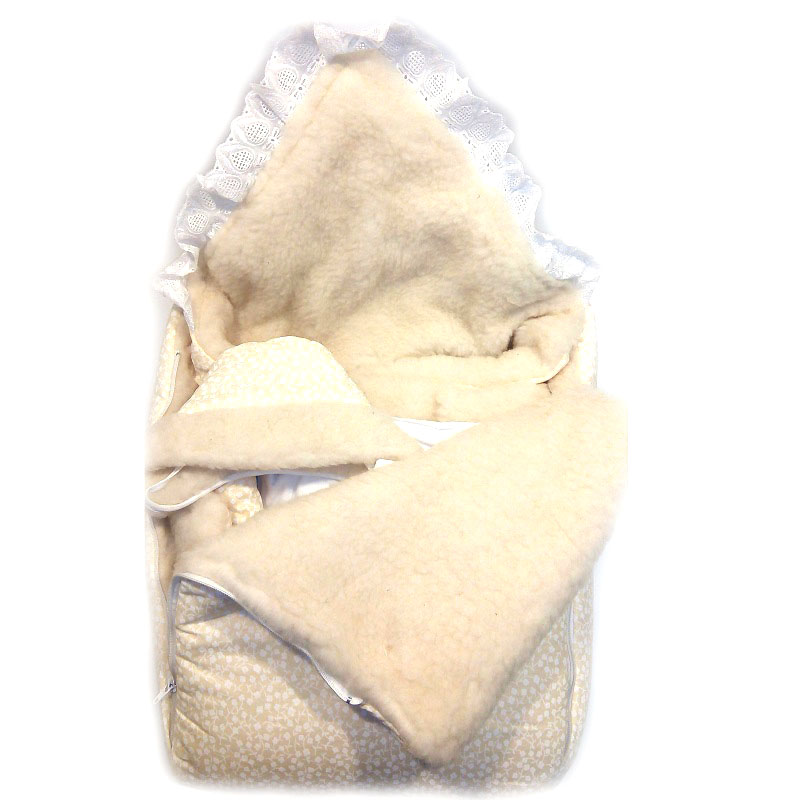 1. Меховой конверт с капюшоном и перед с удобными молниями.