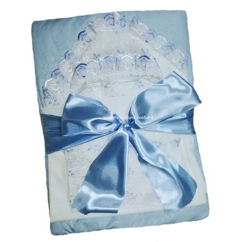 "МоёДитё" комплект на выписку из 9 предметов голубой 150ТС (лето) "Вербена"